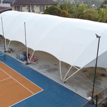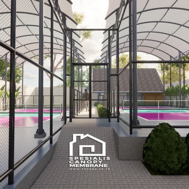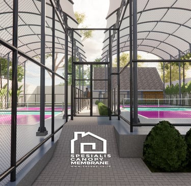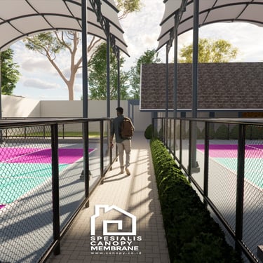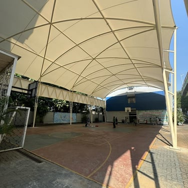 Jasa pembuatan atap membran lapangan basket Tangerang. Desain modern, awet, dan cocok untuk area outdoor.