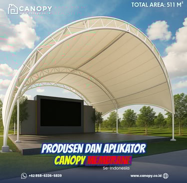 Struktur membrane mampu melindungi area dari terik matahari, hujan, dan angin tanpa mengubah bentuk.Desain Unik & Mewah