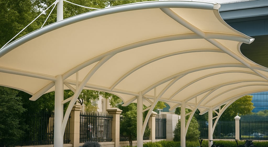 Atap membrane untuk parkir mall & gedung komersial dari canopy.co.id. Tahan cuaca, desain modern, dan meningkatkan nilai estetika properti.