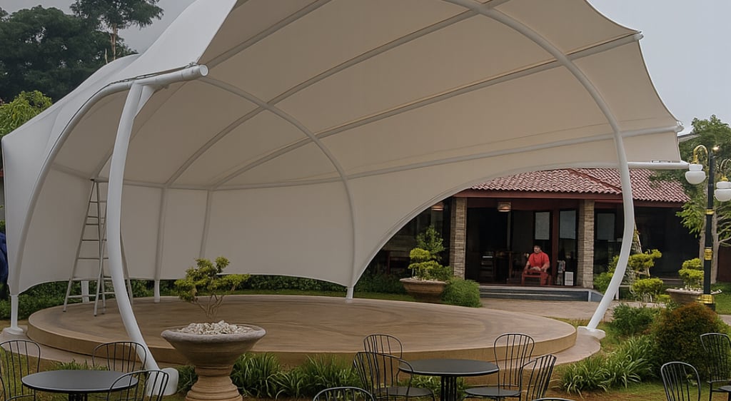 Spesialis jasa canopy membrane Medan untuk rumah, gedung, dan lapangan. Estetik, awet, dan bergaransi.