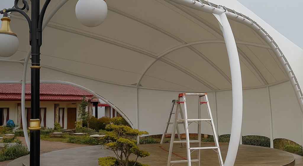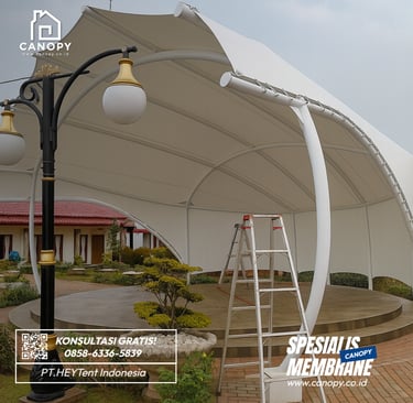 Ahli jasa kanopi membrane di Pekanbaru. Kuat, bergaransi, dan cocok untuk area parkir, mall, dan taman.