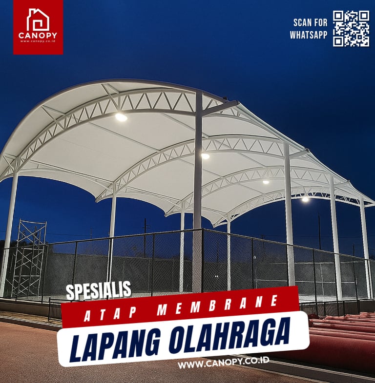 Jasa kanopi membran Bandung Canopy.co.id bisa menjadi pilihan utama bagi yang ingin memasang kanopi atap membran untuk lapangan futsal.