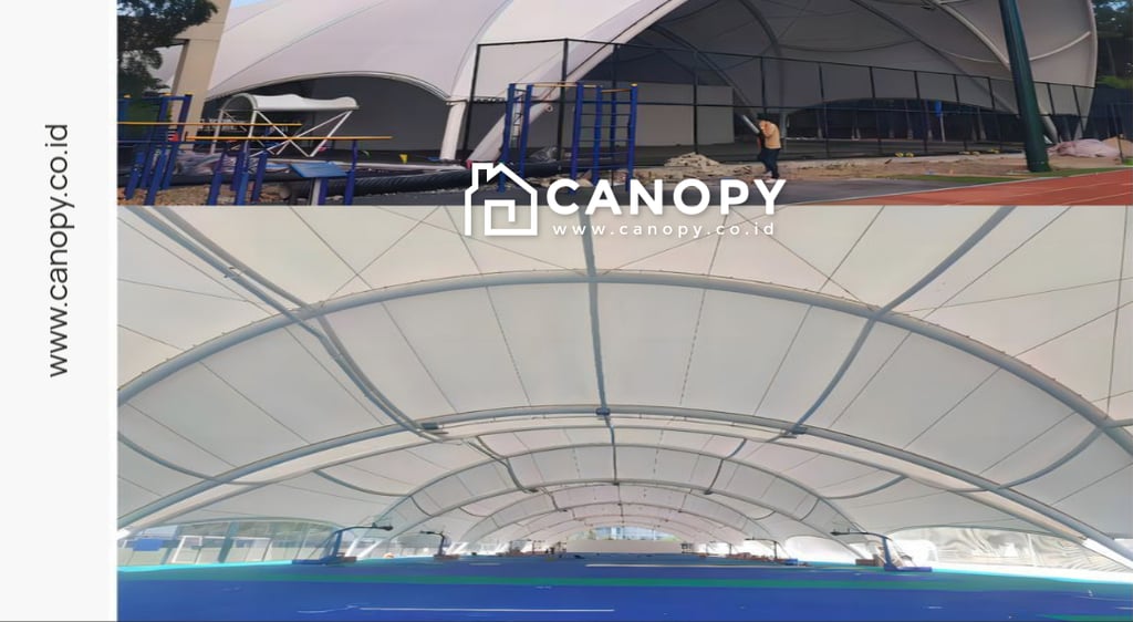 Layanan pembuatan atap membran olahraga indoor & outdoor. Tahan panas, anti bocor, dan cocok untuk segala jenis lapangan olahraga.