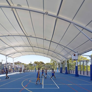 Dengan sistem struktur tarik (tensile structure), atap membrane memberikan ruang bermain yang nyaman sekaligus tampilan arsitektur modern.