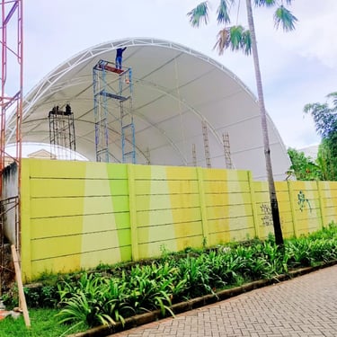 Kontraktor atap membrane lapangan padel profesional dengan desain modern, struktur kuat, dan material berkualitas tinggi. Solusi ideal untuk padel court indoor & semi outdoor.